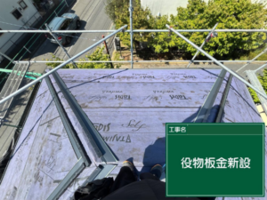 塗装も検討されましたが、塗装だと耐久性が低く、定期的にメンテナンスが必要になってくることを懸念されて、カバー工法での屋根修理をさせていただくこととなりました。