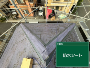 役物板金の上からも防水シートを設置していきます。