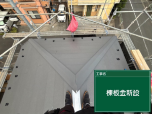 屋根の一番高い部分、棟とよばれる箇所には専用の板金「棟板金」が設置されます。