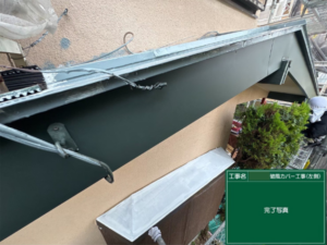 破風板を板金で保護することで、雨水や紫外線から完全にガードし、見た目もすっきりとし、屋根全体の仕上がりが向上しました。