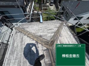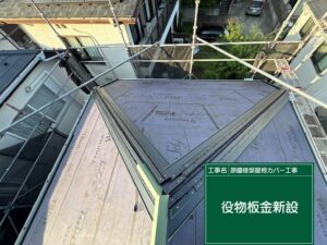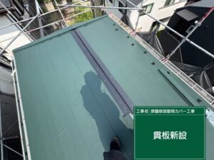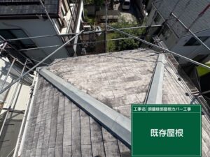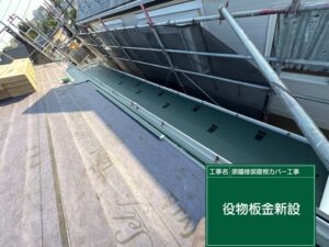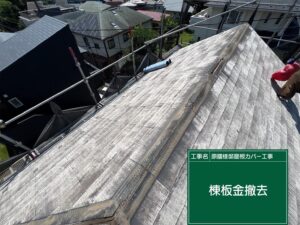 屋根材全体の劣化が進行していましたので、今回は既存屋根の上からカバー工法を施工いたします。