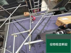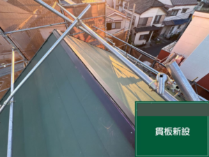 屋根の頂上部分には新しい「貫板」と「棟板金」を新設します。