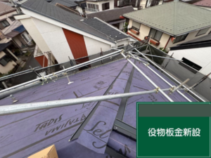 すでに雨漏りとなっていたため、塗装でのメンテナスでは対応できない状態でしたので、「カバー工法」での屋根修理をさせていただくこととなりました。