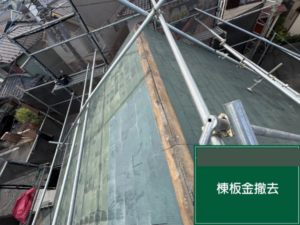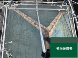 棟板金はと屋根の間には土台となる「貫板」が設置されていますが、こちらも一緒に取り外します。