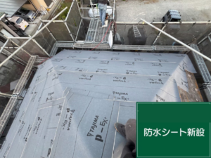 田島ルーフィングの「P-ex⁺」の防水シートを設置します。
