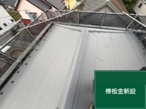 こちら以外にも、屋根の端や、山状になるような特殊な場所には板金を設置し、雨水の侵入を防いでいます。