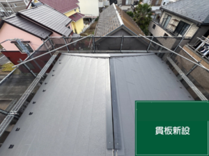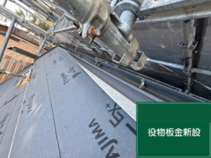 こちら以外にも、屋根の端や、山状になるような特殊な場所には板金を設置し、雨水の侵入を防いでいます。
