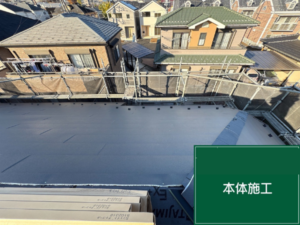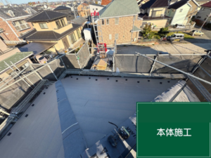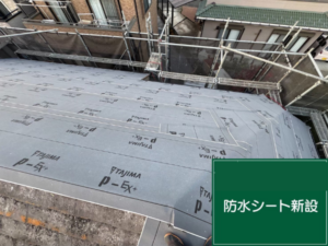 田島ルーフィングの「P-ex⁺」の防水シートを設置します。